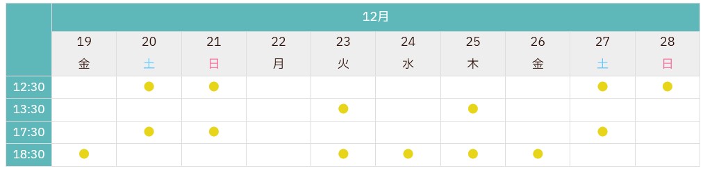 日程:2025年12月19日(金)~12月28日(日)